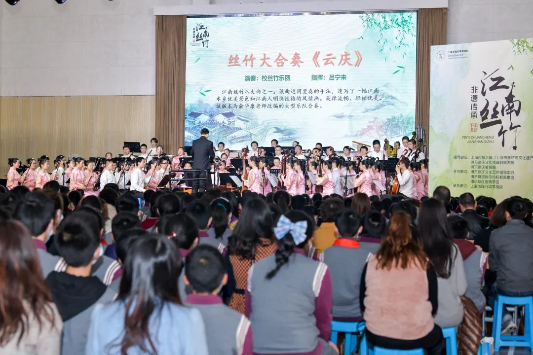 3月26日,上海市陆行中学南校体育馆里丝竹悠扬,上海市“非遗在社区”示范点与“非遗进校园”江南丝竹传承基地展示暨“陆南之春”音乐会闪亮登场。