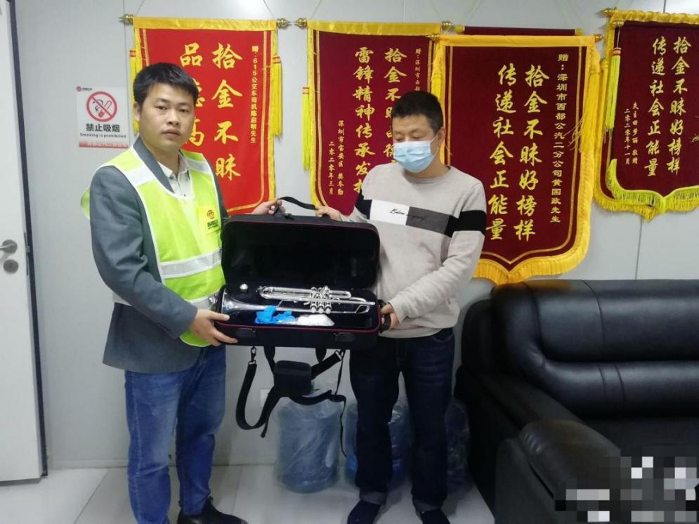 3月4日,杨先生自驾车来到西部公汽和一微巴场站,抱着试试看的心理,寻找价值万元的小号乐器,没想到还真找到了,焦急万分的心顿时平静下来。多亏细心的驾驶员汪伟捡到上交车队,如果被其他乘客捡走就无法查寻了,会造成近万元损失,杨先生点赞汪师傅拾金不昧。