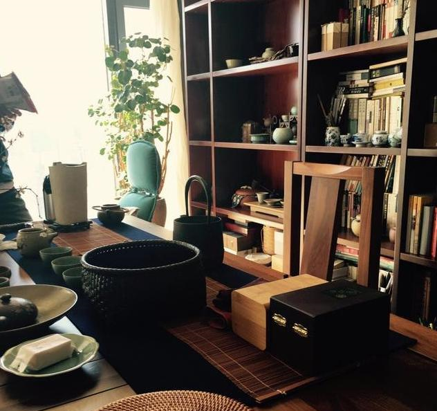 书房还能当成茶室来使用,大型木质书桌造型大气又艺术,坐在这里静静的喝茶也是非常的享受,整个屋子气氛融洽又温馨。桌上还放了特别精致的一束插花,梅花寓意很好,搭配上小巧的青花瓷花瓶更显得艺术。